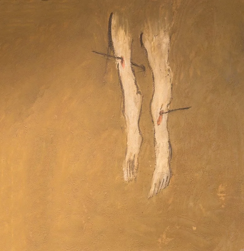 Though this contemporary painting by Spanish artist Victor Mira implies that Sebastian died as a result of the ordeal depicted in this painting in which, in 286, by order of the Emperor Diocletian, Sebastian was tied to a stake and attacked by archers for being a Christian. Believed to be dead, he was rescued and nursed back to health by Irene of Rome, whose Christian husband, a servant of Emperor Diocletian, was also martyred.