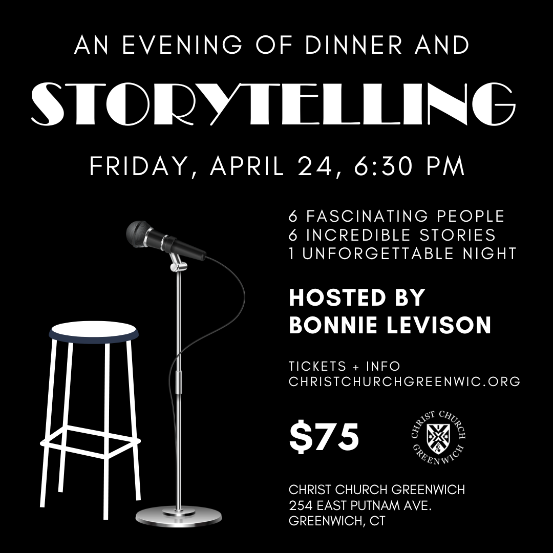 $75Back by popular demand! Bonnie Levison is hosting an evening of fascinating Christ Church parishioners as they tell a personal story that was a tipping point (pivotal experience) in their life. Seated, candlelit dinner in the Chapel. Limited seating.